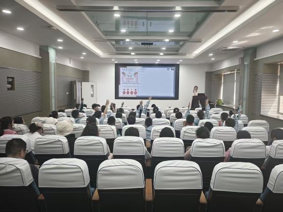 科普环节,“织”行科普团宣讲志愿者位于娜以日常生活中的防晒衣、速干衣等常见功能性纺织品为切入点,逐步延伸至航空航天领域发挥关键作用的宇航服与飞机材料,具体讲解纺织技术领域的不同应用场景。讲座现场,学生们思维活跃,围绕纺织材料的日常功能特性与科技发展趋势展开了热烈且深入的讨论,思维火花在交流中不断碰撞。
