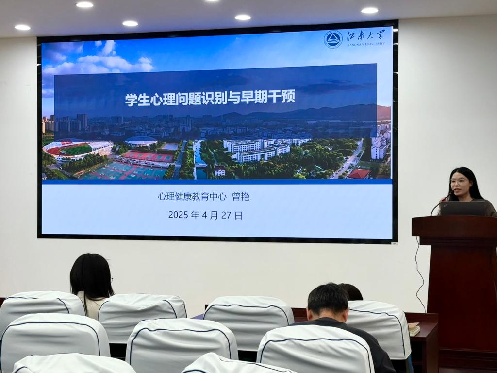 4月27日下午,学校心理健康教育中心曾艳面向学院全体教师开展“学生心理问题识别与早期干预”的专题培训。她结合高校学生心理工作特点,从心理问题的常见表现、识别方法、沟通技巧和干预策略四个维度展开讲解。通过真实案例分析,详细解读了学生群体中高频心理问题的早期信号,指导教师如何通过共情式对话建立信任关系,为后续心理支持奠定基础。