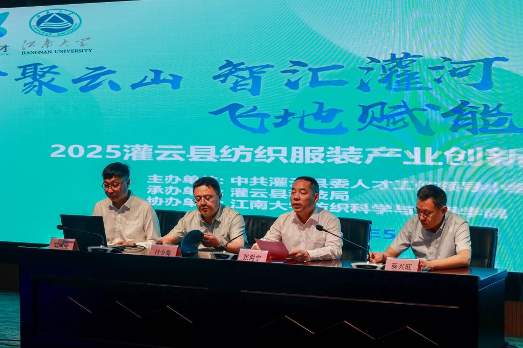 张爵宁致开幕词,他表示,灌云依黄海而兴,拥灌河之利,具有厚重的人文底蕴与得天独厚的地理优势。目前,灌云已形成高端石化、新能源新材料、装备制造、海洋经济、健康食品、轻工纺织为主导的“一核五极”产业集群体系。并于近日,全县省级开发区增至2家。如今,灌云正处于发展全面起势、加速成势的关键时期,对科技创新和人才的需求更为迫切。本次活动既是一次依托江南大学顶尖纺织学科资源、面向科创项目与产业人才的“诚意呼唤”,也是一场以校地协同为纽带、以产教融合为抓手,共促纺织产业创新跃升的“合力同行”。