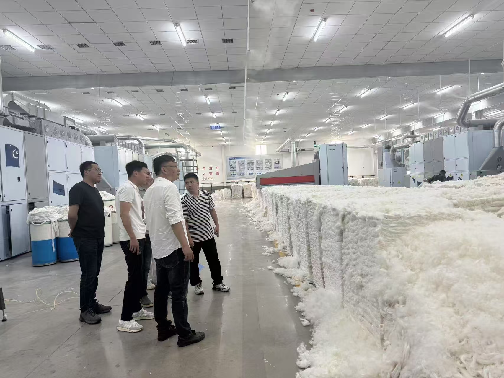 当日下午,教师代表团和灌云县科技局负责人一行赴鹰游新立成、恒邦科技、鼎鑫纺织、瑞航纺织等企业进行产学研对接,就校地合作展开了深入交流,期望为灌云县纺织服装产业的创新和学院高质量发展提供助力赋能。