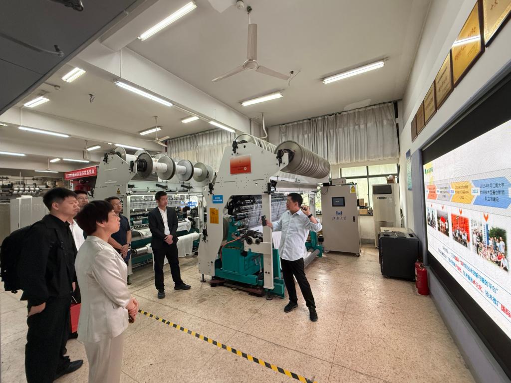 为进一步推动纺织鞋服产业高质量发展,5月28日上午,晋江市委组织部副部长张汉鼎、晋江市经信系统党委副书记颜伟杰、晋江市科技局局长许紫竹一行莅临江南大学针织技术教育部工程研究中心交流调研。江南大学纺织科学与工程学院党委书记张菁燕、针织中心蒋高明教授、丛洪莲教授、贺海军副教授出席了此次交流会议。