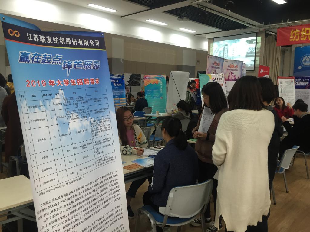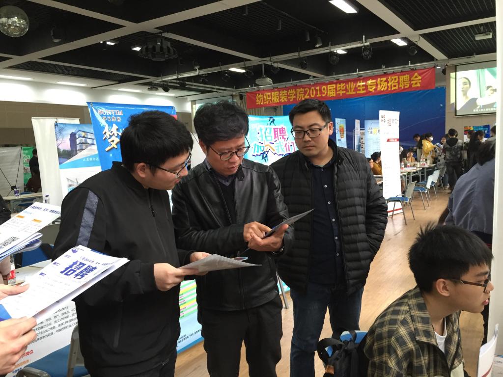 学院2019届毕业生共517人,其中本科毕业生363人,研究生毕业生154人。本次招聘会共有来自省内外的65家纺织、轻化、服装行业的单位参会,其中包括江苏省纺织研究所股份有限公司、通标标准技术服务有限公司、江苏红豆国际发展有限公司、浙江恒逸集团有限公司等国内知名企业,共为毕业生提供就业岗位1254个。本科生平均起薪6000元/月,硕士研究生平均起薪8000元/月,博士研究生平均起薪12000元/月。