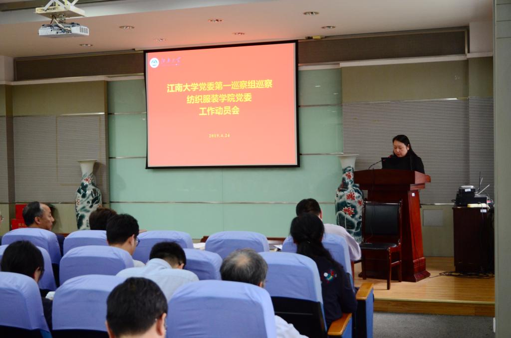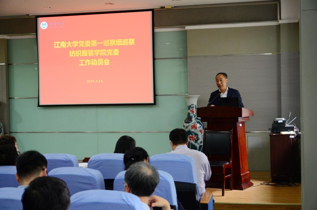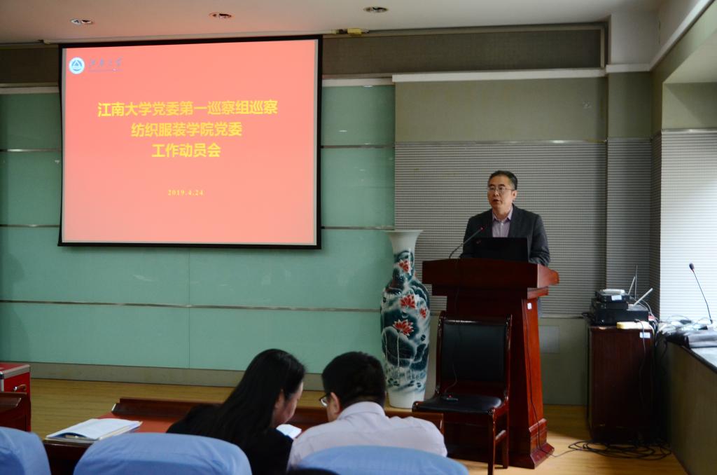 4月24日下午,纺织服装学院在A103召开巡察工作动员会,校党委委员、校党委巡察工作领导小组成员、党委办公室主任、党委统战部部长兼保密办公室主任朱飞同志,江南大学党委第一巡察组组长、校党委委员、校长办公室主任张光生同志,巡察组成员校纪委委员、资产经营管理公司党总支书记陈敏娟同志,校纪委委员、机关党委书记周建中同志、校团委书记王维同志,医学院党委秘书兼人事秘书包羽同志,纺织服装学院党政班子全体成员出席了会议,纺织服装学院共131名教职员工参加了会议。动员大会由纺织服装学院院长付少海主持。