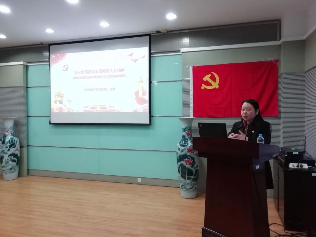 开班仪式结束后,院党委书记张菁以“深入学习贯彻全国教育大会精神,做德智体美劳全面发展的社会主义建设者和接班人”为题为全体学员讲授第一次党课。