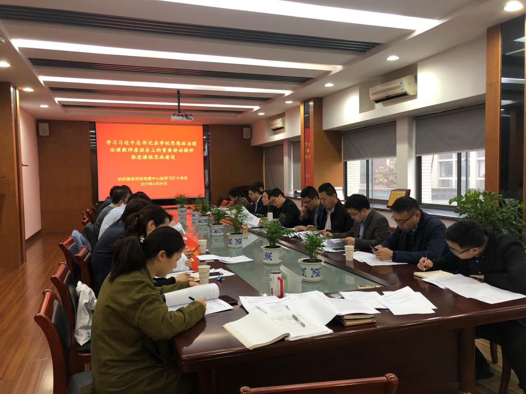今年3月18日,习近平总书记主持召开学校思想政治理论课教师座谈会并发表重要讲话,对新时代学校思想政治理论课建设指明前行方向,对广大思想政治理论课教师提出殷切期望。习近平总书记在讲话中强调,要用好课堂教学这个主渠道,各类课程都要与思想政治理论课同向同行,形成协同效应。在此背景下,纺织服装学院召开中心组(扩大)学习,希望借此机会着力推进学院“课程思政”建设工作。
