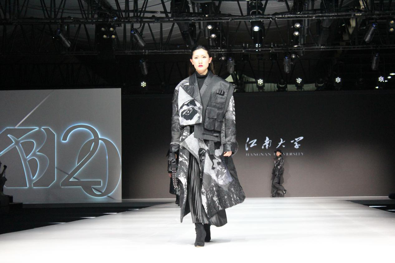 江南大学新锐设计师作品展的主题是《零·Reset》,全部为江南大学2019级服装与服饰设计专业优秀毕业生原创设计作品,共计24个系列作品,近百件服装。独具匠心的装束造型,模特富有感染力的演绎,使这场舞台秀既展现了较高的专业水准,也极具感染力,赢得了在场企业家和专业观众的阵阵掌声。