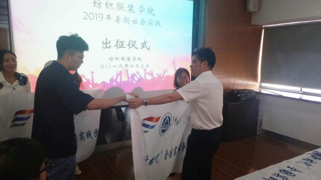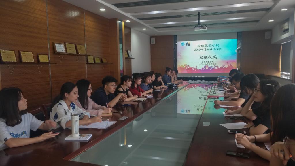7月3日下午,纺织服装学院2019年暑期社会实践出征仪式在A306会议室召开。院党委副书记、副院长周云龙,分团委书记王统斌,16级本科生辅导员马倩如,18级本科生辅导员于乐,19级本科生辅导员伍胤鸿出席,各实践团队成员全部参加。
