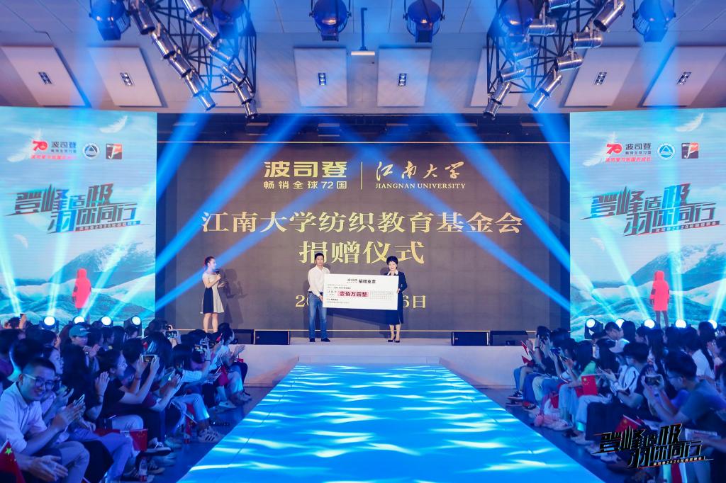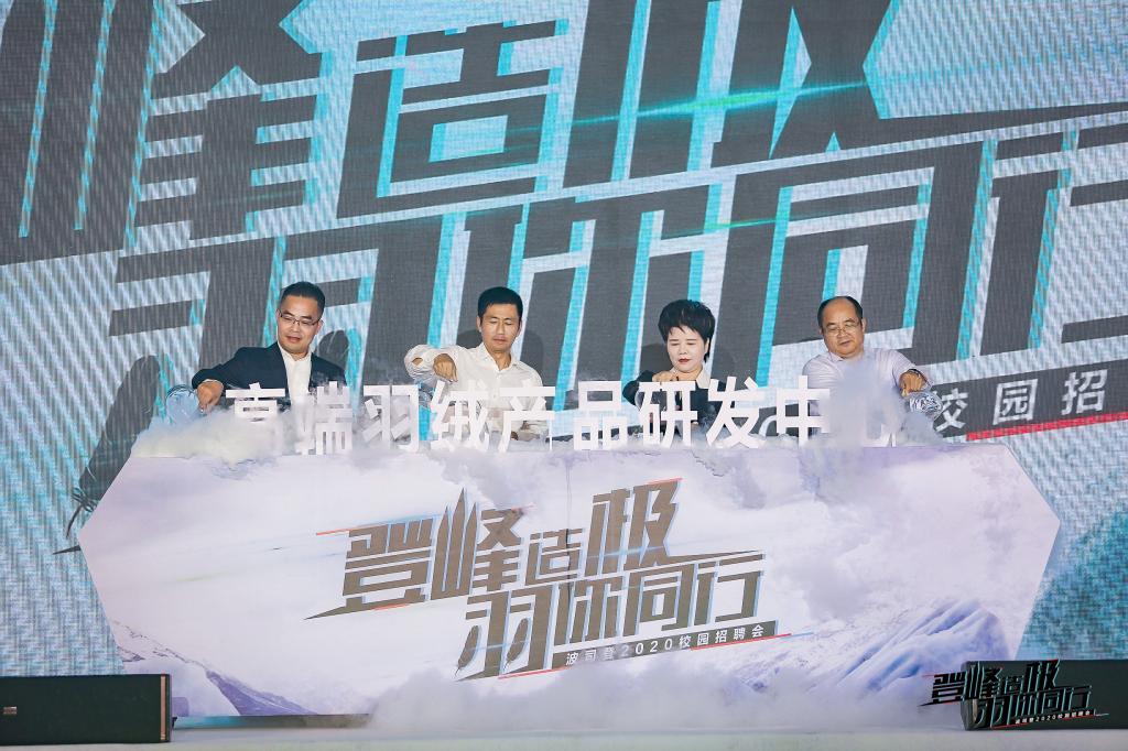 活动在波司登集团企业宣传片《与祖国共成长》中拉开帷幕。首先,梅冬总裁与戴月波副书记共同签署“波司登奖助学金捐赠协议”。根据协议,未来五年波司登集团将为江南大学纺织教育发展基金会捐赠100万元,关注学生考研就业、学科竞赛、国际交流,助力纺服学子成长成才。随后,芮劲松副总裁与高卫东教授共同签署江南大学与波司登集团“产学研合作备忘录”,未来双方将在博士后工作站、技术创新研发、科技人才队伍、功能面料开发等方面展开密切合作,提升纺织服装科技自主创新力和国际竞争力。随着备忘录的签署,江南大学——波司登集团高端羽绒产品研发中心正式成立。