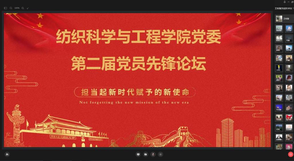 6月17日下午,纺织科学与工程学院党委举办第二届学生党员先锋论坛。学院线下在A203党建工作室设立主会场,线上采用视频会议方式同步进行。