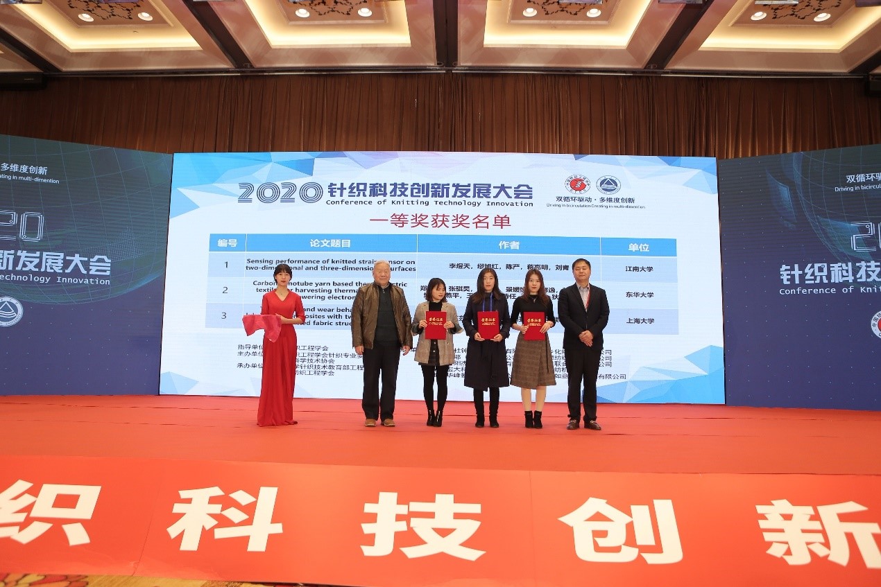 开幕式上举行了“中国纺织工程学会第二十六届理事会针织专业委员会”聘任仪式,江南大学蒋高明教授当选针织专业委员会主任。随后进行了2020“宗平生针织基金会”优秀论文颁奖,共评出一等奖3名,二等奖5名,三等奖13名,涵盖10多家高校科研院所与企业。