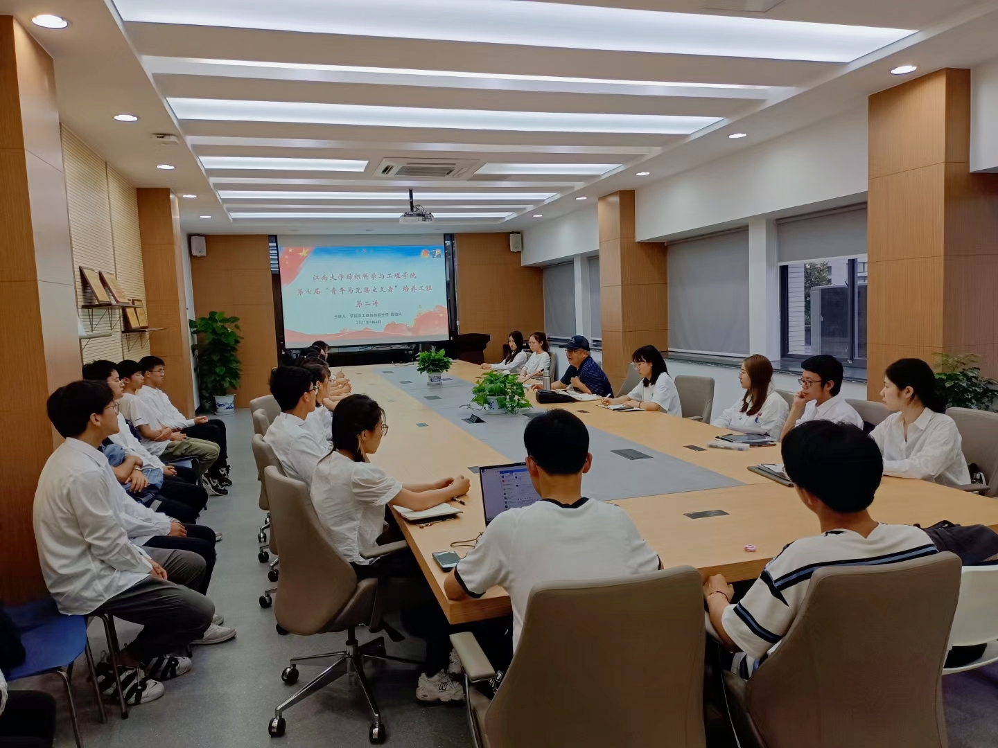 6月2日,纺织科学与工程学院第七届“青马工程”第二讲在纺院A306举行。活动邀请学院关工委常务副主任、特邀党建组织员袁伯兴主讲,本届“青马工程”全体学员参加。活动由学院分团委书记陈裕主持。