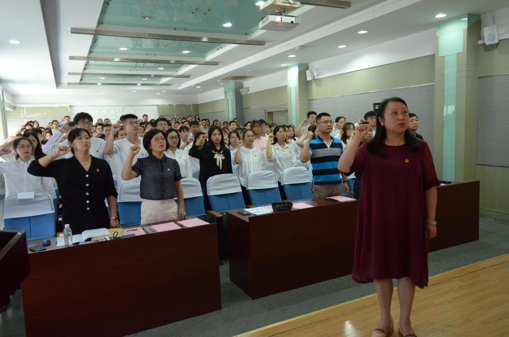 院党委书记张菁带领新党员宣誓、老党员重温入党誓词仪式