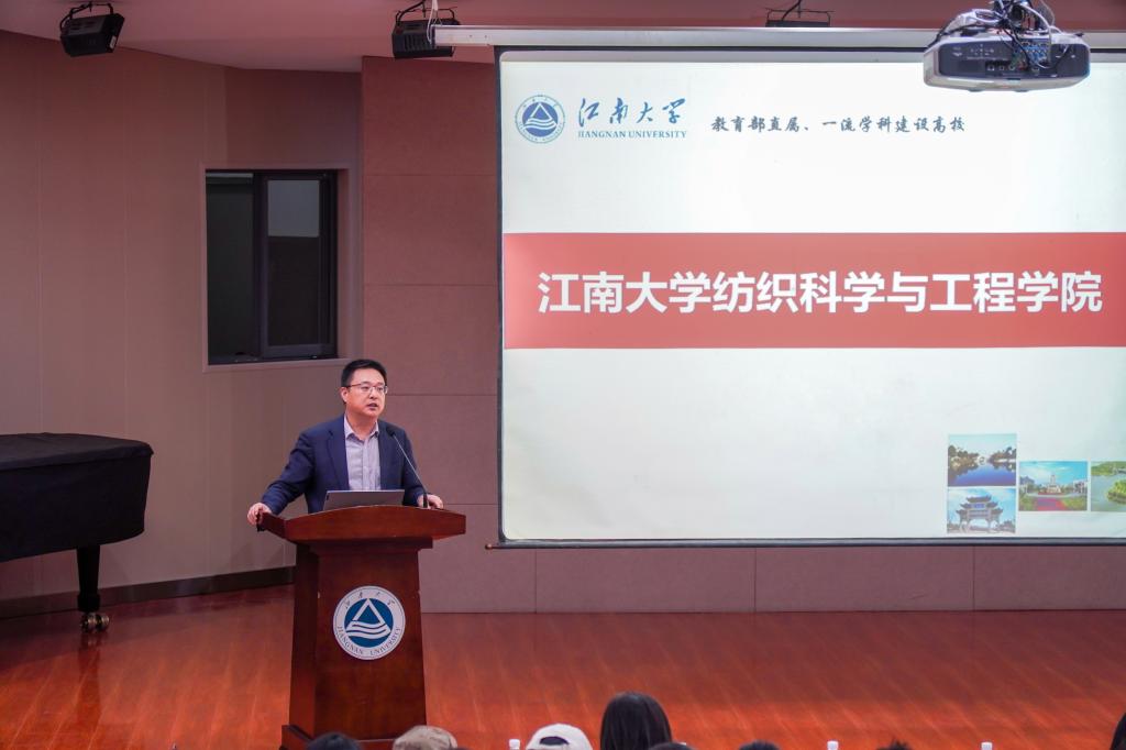 付少海分别介绍了江南大学和纺织科学与工程学院的悠久历史和基本情况,并从人才培养、师资队伍、科学研究、海外交流四个方面展开,向同学们详细介绍了学院的建设情况、学科优势及特色、近年来学院的科研成果及荣誉。他勉励全体同学做好大学规划,找准人生定位;养成良好习惯,强健身心体魄;拓宽学术视野,提高专业素养。