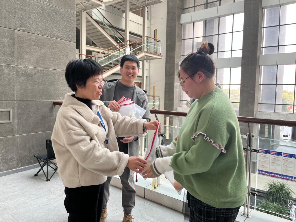 2022年全国硕士研究生招生考试即将到来。12月7日,为坚定考研信心,缓解学生考前压力,积极冲刺迎考,本着不打扰考生复习计划与安排,“学生在哪就去哪”的原则,纺织科学与工程学院党委副书记陈艳君与毕业班辅导员吴丹来到图书馆、学生宿舍并通过班级学生干部慰问考研学生,送上学院精心准备的考试用品和橙子,预祝学生考研马到“橙”功。
