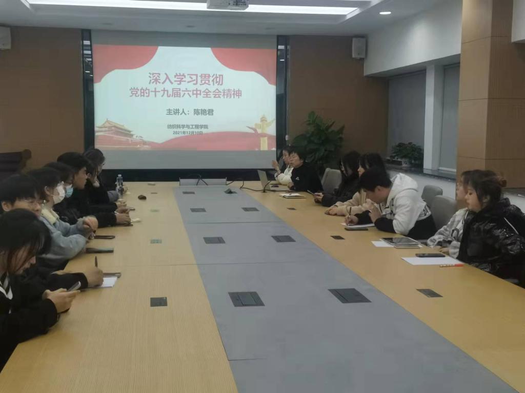 为深入开展党的十九届六中全会精神学习活动,及时给基层党支部传达会议精神。12月10日,纺织科学与工程学院党委副书记、副院长陈艳君老师在学院A306会议室为本科生党支部党员上了一堂生动活泼的党课。此次党课主要面向纺织本科生党支部和轻化本科生党支部成员及第42期党的发展对象。
