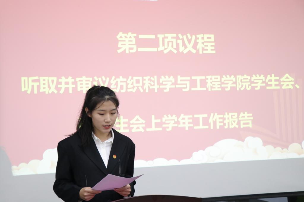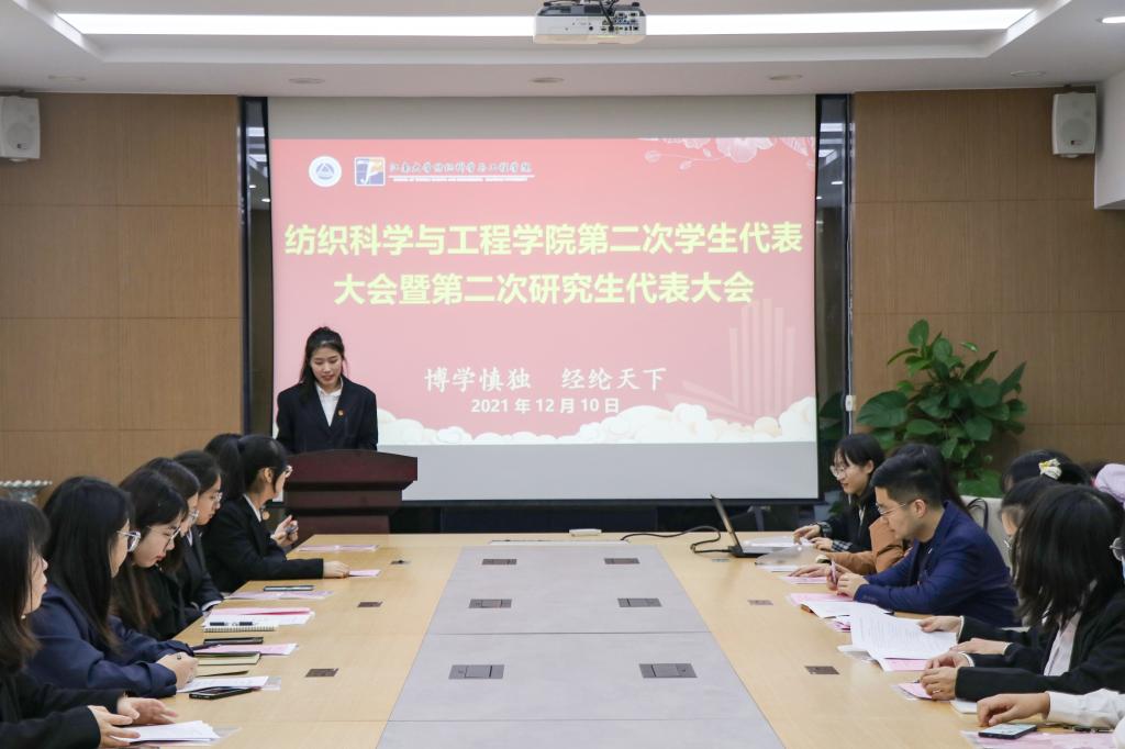 12月10日,纺织科学与工程学院第二次学生代表大会、第二次研究生代表大会在学院A306会议室召开。学院分团委书记陈裕,研究生辅导员孙慧,23名本科生、研究生代表出席了大会,会议由学院学生会执行主席吕鑫主持。