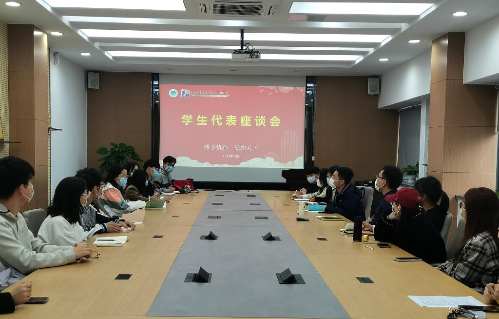 本次座谈会是在各年级集中汇总了与学生学习、生活、服务息息相关的意见建议基础上召开的。座谈会上,各年级学生代表们交流了目前阶段思想上、学习上和生活上的基本情况。同学们表示,目前学校后勤服务保障是充分的,能够满足在校学生吃、住、学、用、医等各方面需求;学院领导、辅导员、班主任等教师群体,深入班级和宿舍,加大了对同学们的关心关爱。同时大家也结合各自实际情况交流了一些存在的问题和困难,就课程安排、食堂就餐、图书馆预约、快递服务、超市购物、自习室、公寓设施、管理制度等与学生学习、生活相关的问题发表意见和建议。老师对同学们关心的问题进行了回应和解答,表示将梳理意见和建议,与学校各职能部门沟通,进一步给同学们创造更加有序、安全、优良的学习和生活环境。会上,老师们还向同学们介绍了目前疫情防控形势,强调当下疫情的变化性、复杂性和防控的紧迫性,解读了学校疫情防控政策,告诫同学们要严格遵守防控要求,号召学生干部要充分发挥先锋模范作用,及时、完整、有效地将学校的疫情防控政策传达给身边的同学。