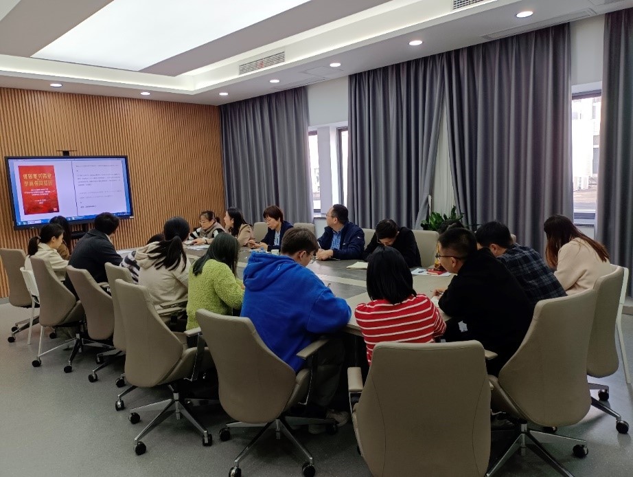 随后,张菁对学院迎接党的二十大活动进行了部署和安排,届时将安排师生集中收看党的二十大直播。要求各支部做好思想准备,收集师生反响,营造党的二十大活动氛围。此外,教职工支部与学生支部就迎接党的二十大活动开展情况与后续安排进行了汇报与交流,并由张菁进行点评和指导。