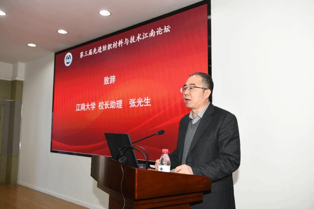 张光生代表学校致辞。他对来自全国各地的杰出学者、与会嘉宾表示热烈欢迎,希望学者们围绕先进纺织材料功能化及高性能化、先进纺织技术交叉融合等方向畅享学术交流。通过彼此知识的融合、思想的碰撞,进一步开拓学术视野、激发创新思维,拓宽纺织领域发展思路、促进领域同仁科研合作,推进江南大学学科建设和发展。纺织科学与工程学院院长付少海介绍了学校、学院发展概况。他指出,学院在智能制造、数字化纺织技术、生态染整技术等方面形成了较为突出的优势与特色,行业影响力不断提升,期待与各位专家共同努力携手为纺织学科的发展作出新贡献。