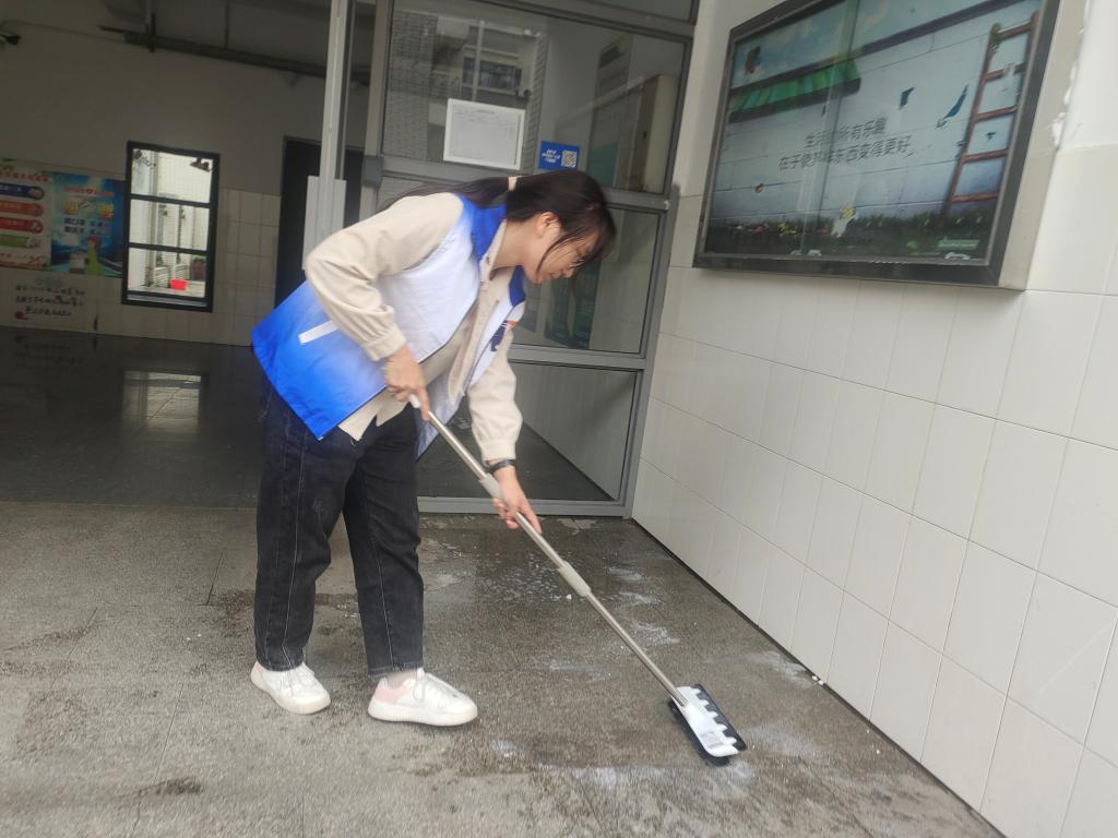 此外,学院青年志愿者协会也针对园区公共区域的卫生问题,组织学生志愿者开展校园环境卫生主题教育实践活动。在不影响居住区域正常生活的前提下,学生志愿者对公共区域的地板楼梯进行清洁,对楼梯扶手进行擦拭,以实际行动践行了劳动精神,宿舍园区的居住环境得到了改善。校园环境卫生主题教育实践活动,为同学们的正常学习和生活提供了更多保障。
