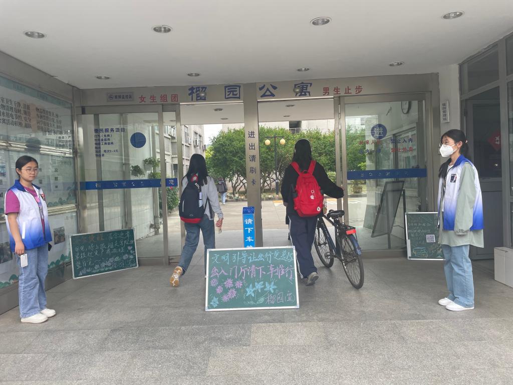 学院青年志愿者协会结合校园交通实际情况,组织学生志愿者联合榴园公寓管理站,开展非机动车交通秩序维护活动。针对校园非机动车乱停乱放,不遵守校园交通规则等校园痛点问题,学生志愿者进入宿舍园区进行非机动车的规范化整理,在学生公寓负责老师的带领下,对长期不使用及乱停乱放的自行车进行归整,留出足够的出行空间,使园区内的自行车停放更加规范有序。同时,学生志愿者还在园区门口对未遵守交通规则的同学进行礼貌提醒,引导出行学生掌握非机动车交通规则及安全出行条件。