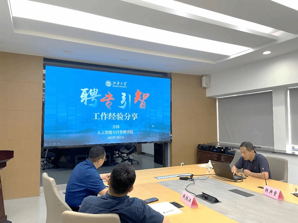 蔡建英介绍了学校近几年国际交流合作取得的主要成果,并重点解读了科技部、教育部和江苏省科技厅关于国际交流项目、访学、办学和平台等相关政策。方伟介绍了人工智能与计算机学院和英国皇家工程院院士、英国萨里大学Josef Kittler教授团队之间历经20年的合作历程和合作成果。与会教师围绕相关问题展开咨询与详细讨论,魏取福鼓励青年教师主动关注各自领域的海外专家团队,抢占先机、积极申请各个层级和地区的国际合作项目。