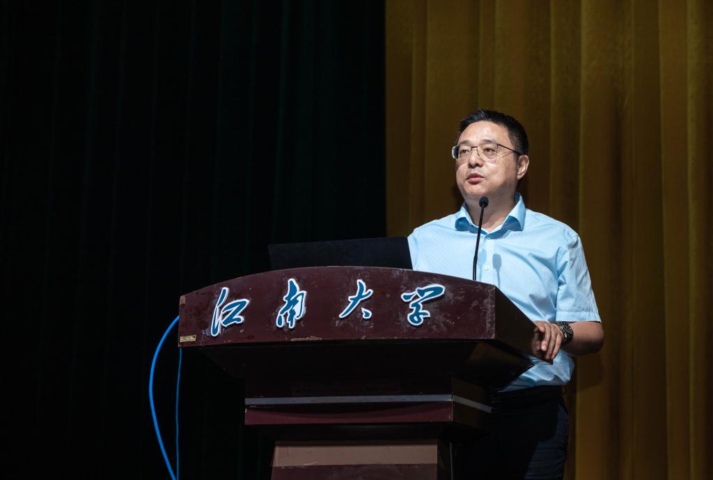 2020级博士生郑晴、纺织2104班李英荟作为老生代表向2023级新生分享了自己在江南的成长经历与求学感悟。2023级硕士生杨光雨露、轻化2302班马誉轩作为新生代表与同学们分享了他们对未来的设想与期望。