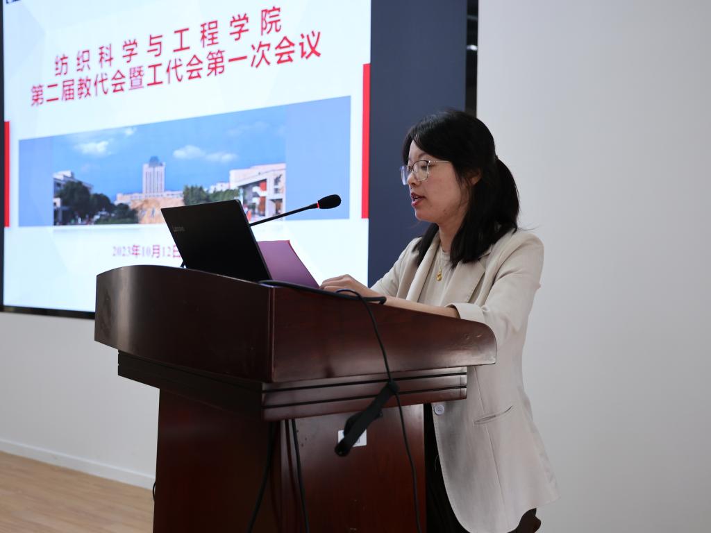 10月12日下午,纺织科学与工程学院第二届教代会暨工代会第一次会议在学院103报告厅召开。40位教代会暨工代会代表出席会议,会议由纺织科学与工程学院党委副书记、副院长杨莉勤主持。
