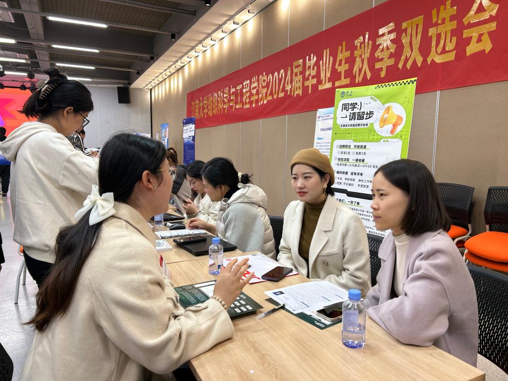 为进一步做好用人单位校园招聘服务,搭建用人单位和毕业生双向选择的交流平台,满足用人单位的招聘需求,促进毕业生高质量充分就业,11月15日,纺织科学与工程学院在北活F105招聘大厅举办2024届毕业生秋季双选会。