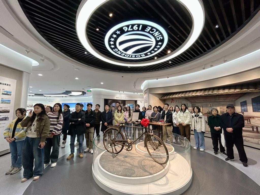 随后,师生党员一行来到波司登集团,参观登峰馆、党建馆、智能配送中心、线下直营店,并与集团相关工作人员沟通交流。在登峰馆,大量丰富详实的史料,反映出波司登集团从无到有、从小到大、从大到强的发展历程;在“领航”党建馆,学习波司登集团将党建工作融入企业生产经营管理发展全过程;在智能配送中心和线下直营店,感受全智能化的生产、仓储、销售一体化格局。同学们沿着波司登品牌之路的参观路线,纷纷表示要学习波司登集团高远的目标、高尚的精神、高贵的品德。此外,师生党员们还就企业文化、大学生就业等问题进行探讨。