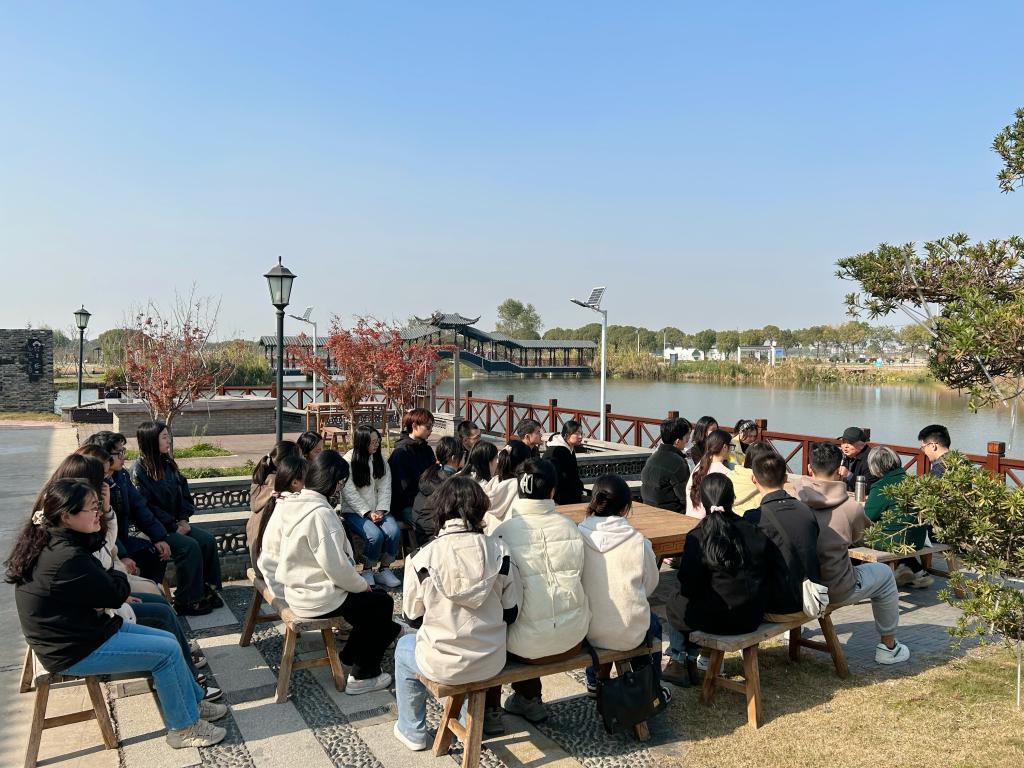 师生党员一行首先来到江苏省生态宜居美丽乡村——常熟市古里镇坞坵村。近年来,坞坵村坚持以党建为引领,将特色文化与基层治理有机融合,师生党员实地调研,体悟数字乡村建设赋能基层治理现代化的“坞坵经验”。活动期间,袁伯兴在田间地头给师生党员们上了一堂生动的“田园党课”,党课围绕《深入学习贯彻习近平文化思想》开展。他强调,习近平文化思想是新时代党领导文化建设实践经验的理论总结,各位党员同学要认真学习领会,坚持学以致用,做到学思用贯通、知信行统一。袁伯兴希望同学们的每一项学习和工作都要以“钉钉子精神”落到实处,展现新气象、新作为。
