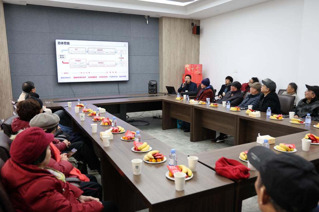 付少海向与会老同志介绍了学院在学科建设、科学研究、师资队伍、人才培养和社会服务等方面所取得的重大成绩,以及新时代背景下所面临的挑战和未来的发展规划。面对新时代纺织巨变与纺织产业链不断拓宽内涵和外延的新形势,学院积极作为,重点加强智能纺织、新型纤维材料、生态染整技术、产业用纺织品、特种纺织结构材料的纺织+学科布局,服务于国家重大战略,服务于国家双碳战略,服务于未来人类生命健康。
