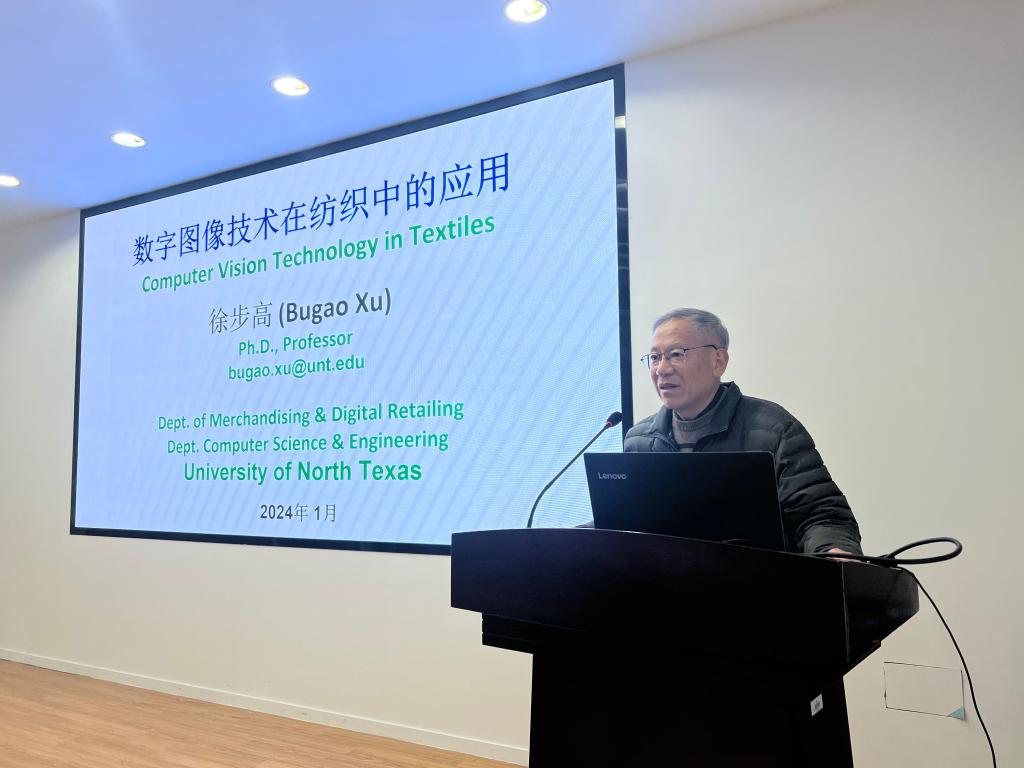 1月8日下午,来自美国北德克萨斯大学的徐步高教授做客江南讲坛暨2024研究生学术文化节活动,为师生带来题为“纺织图像技术及应用实例”的精彩讲座。本期讲坛由纺织科学与工程学院副院长张典堂主持。