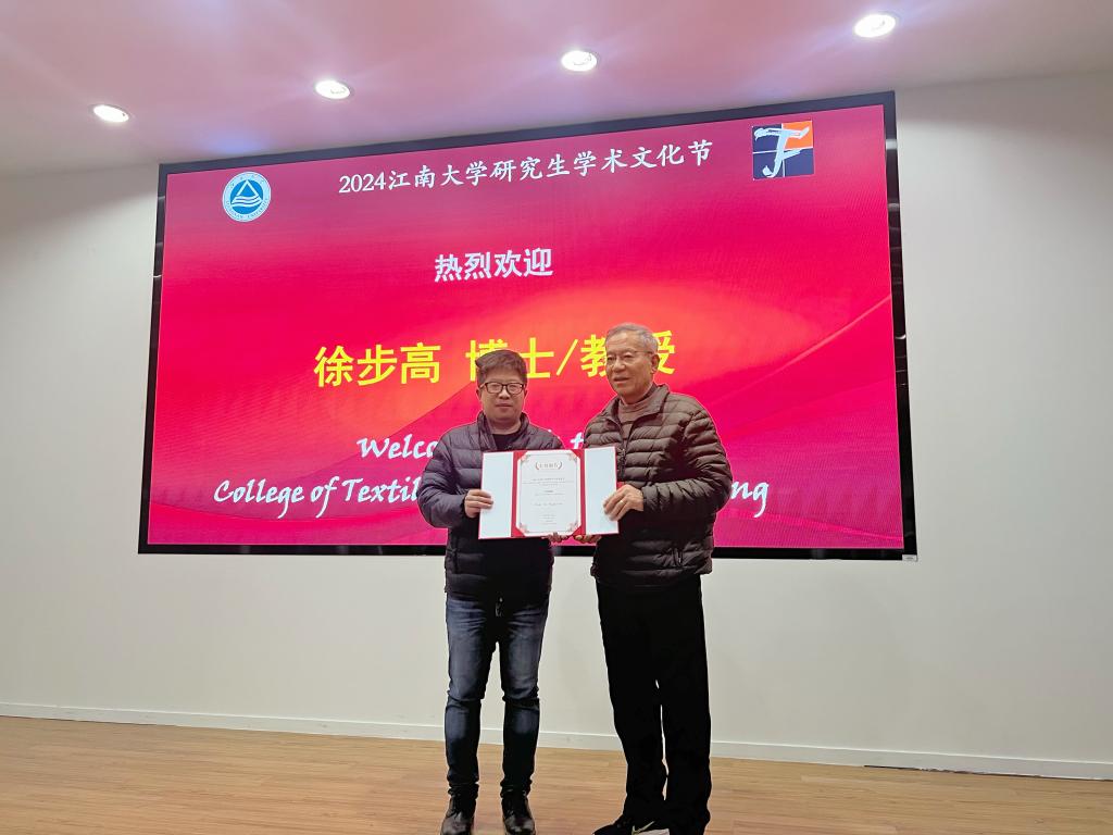 此次讲坛让与会师生对纺织科技交叉学科知识有了更深刻的认识,对同学们的学习和教师的科研工作具有很大的帮助。讲坛最后,张典堂为徐步高颁发了“主旨报告”荣誉证书。