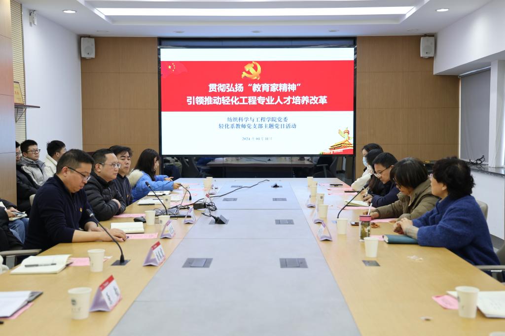 1月11日下午,江南大学党委常委、副校长张影陆参加纺织科学与工程学院轻化系教师党支部“贯彻弘扬‘教育家精神’,引领推动轻化工程专业人才培养改革”主题党日活动。学院党委书记张菁燕,支部党员、院长付少海,轻化系教师党支部及共建支部、硕士第三党支部全体党员参加活动。会议由党支部书记张丹主持。