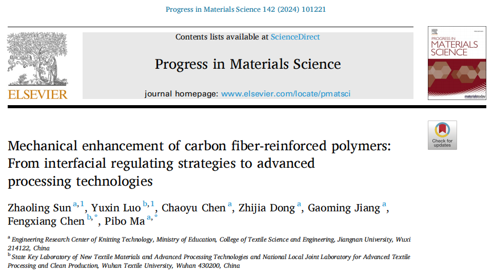 近期,江南大学纺织科学与工程学院针织技术教育部工程研究中心蒋高明教授团队在材料领域国际顶级期刊《Progress in Materials Science》发表题为“Mechanical Enhancement of Carbon Fiber-Reinforced Polymers: From Interfacial Regulating Strategies to Advanced Processing Technologies”的长篇综述论文。