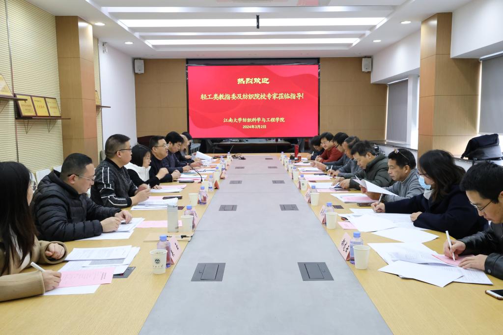 3月2日,江南大学轻化工程专业2024级本科人才培养方案论证会在江南大学纺织科学与工程学院召开。教育部轻工类教指委秘书长、四川大学何有节教授,教育部轻工类教指委委员、中国纺织服装教育学会副会长纪晓峰,教育部轻工类教指委委员、东华大学赵涛教授,教育部轻工类教指委委员、北京服装学院王建明教授,苏州大学关晋平教授,天津工业大学巩继贤教授,浙江理工大学胡毅教授,青岛大学郝龙云教授参会并担任江南大学轻化工程专业2024级本科人才培养方案论证会委员。江南大学纺织科学与工程学院院长付少海教授、轻化工程系范雪荣、王平、殷允杰、张丹等教授以及其他骨干教师出席会议。会议由纺织科学与工程学院副院长张丽平主持。
