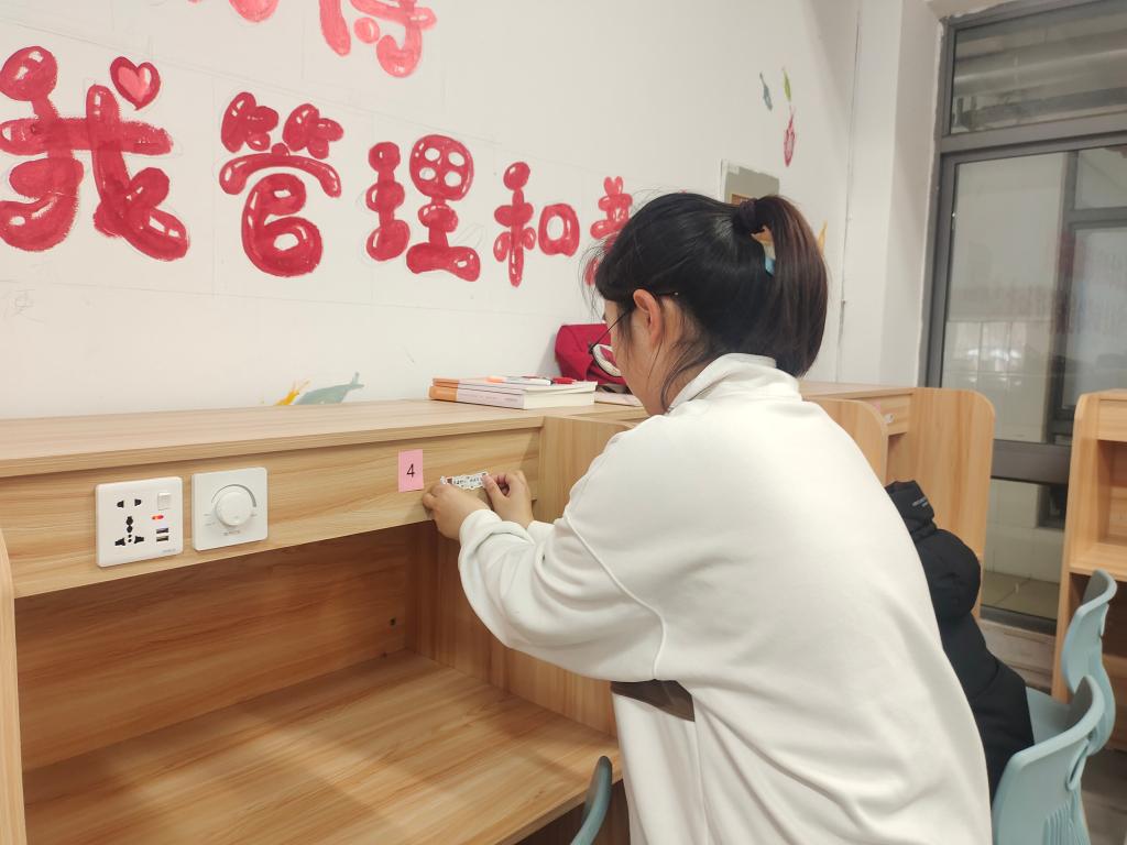 除潮气、迎朝气,贴心物资送上门。志愿者们结合现阶段宿舍生活情况,为同学送上衣柜除湿袋,有效防止宿舍衣柜回潮。传温暖、清空气,无声服务在身边。志愿者们主动上门,为同学们拆洗空调过滤网,营造干净的宿舍空气环境。新环境、递真情,点点贴纸见温馨。志愿者们走进园区自习室,和宿管阿姨一起布置装点,提供“沉浸式学习”的优良氛围。