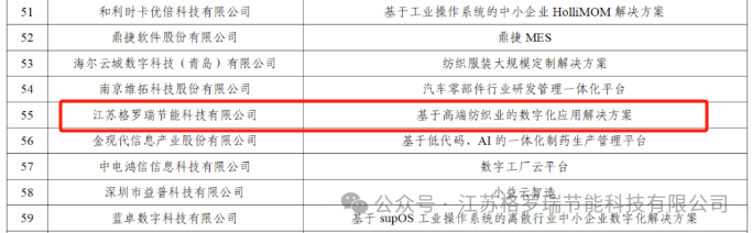 近日,纺织科学与工程学院校友企业江苏格罗瑞节能科技有限公司的“基于高端纺织业的数字化应用解决方案”荣获国家级荣誉,被工业和信息化部中小企业局选入2023年中小企业数字化转型典型产品和解决方案之列。