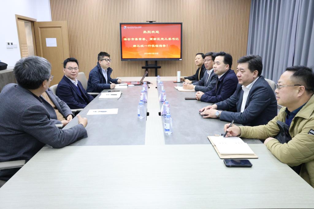 马丕波对海安市委常委、高新区党工委书记一行的到来表示热烈欢迎,他详细介绍了学院在科学研究、社会服务以及人才培养等的方面情况,着重介绍了纺织新材料、纺织技术与装备、纺织生态与染整等领域的创新成果。他强调,学院始终坚持以科技创新为引领,致力于推动产学研深度融合,为地方经济社会发展提供有力支撑。他期待与海安市在科技研发、人才培养、成果转化等方面开展深度合作,共同推动双方发展迈上新台阶。