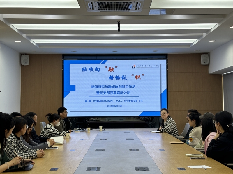 3月22日,纺织科学与工程学院在A306会议室举办“欣欣向‘融’,格物致‘织’ ”新闻研究与融媒体创新工作坊第一期,校党委宣传部于乐老师受邀作专题培训。学院师生党支部宣传委员,学生会、研究生会各部门宣传骨干参与了本次培训,培训由学院学工办副主任任学敏主持。