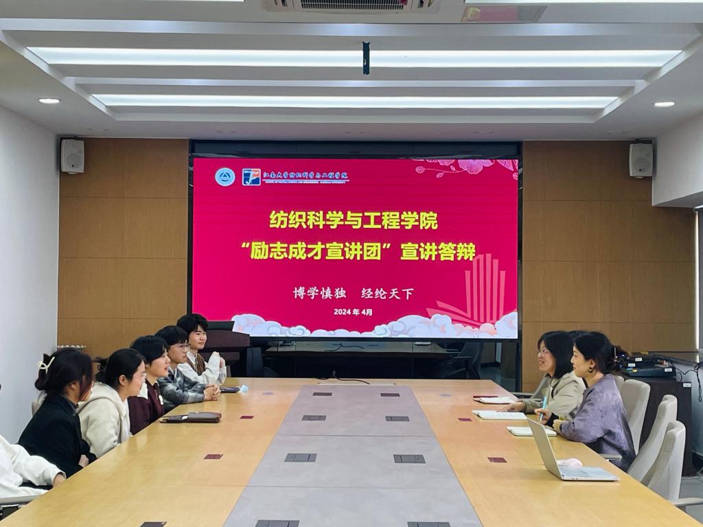 4月9日下午,纺织科学与工程学院“励志成才宣讲团”答辩会在学院A306会议室举行。学院党委副书记、副院长杨莉勤,辅导员伏曦、孙婷婷参加活动并担任评委,全体“励志成才宣讲团”申报者参加现场答辩。