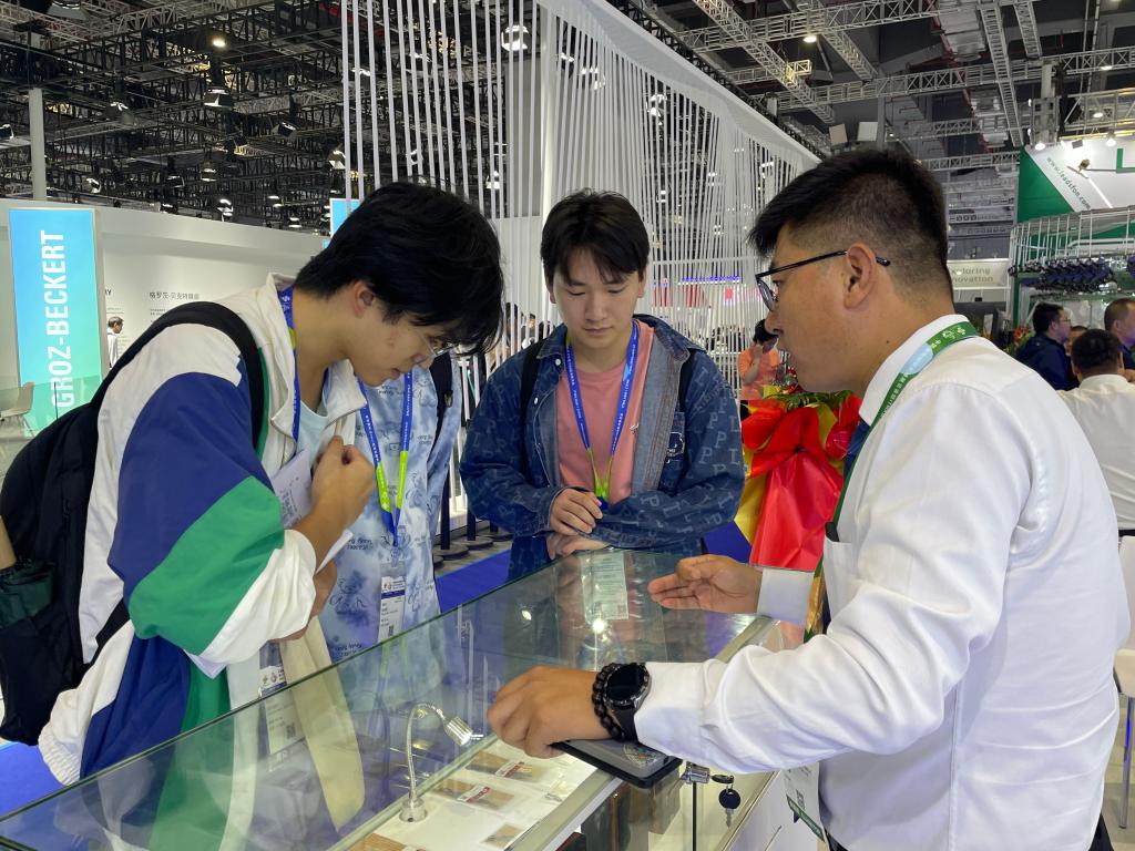 参观过程中,同学们认真感受每一台机器所讲述的纺织工业创新故事,并与专业课老师、参展商代表进行深入探讨,收获颇丰。同学们在多元展区中穿梭,近距离观察纺纱、织造、染整等多个纺织核心生产环节涉及的先进设备,了解化纤、染化料、墨水等新型原材料,体会产业链一站式高效对接、协同发展的磅礴力量;了解智能纺机设备创新升级新成果,感受智能化引领强大优势;学习融合人工智能AI互联、大数据等前沿科技呈现出的新技术、新应用,全方位领略创新驱动的发展趋势。在创新浪潮席卷全球的当下,此次参观不仅是一次学习之旅,更是激发学生创新思维的契机。同学们接触了专业前沿,了解到全球纺织行业向智能化、绿色化、融合化不断迈进的趋势,从而开阔全新视野,激发对未来纺织科技的兴趣与热情。