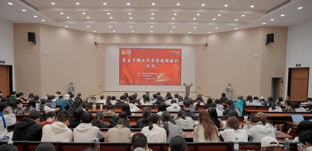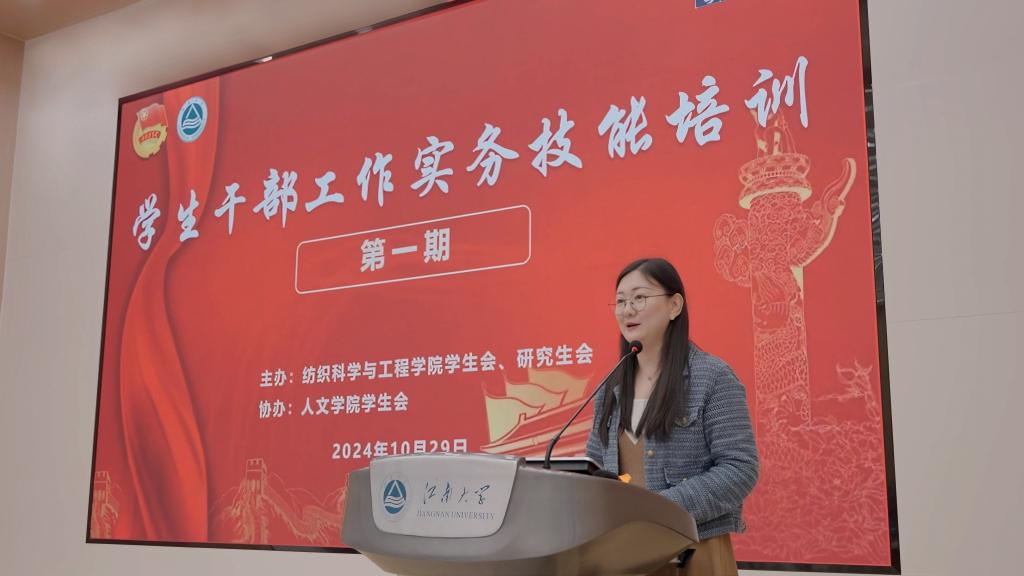 为提高学生干部的专业水平、工作技能和综合素养,10月29日,第一期学生干部工作实务技能培训在1C109顺利举办。本次培训由纺织科学与工程学院学生会、研究生会主办,人文学院学生会协办。校党委宣传部、融媒体中心新闻宣传负责教师于乐,纺织科学与工程学院学工办主任兼分团委书记任学敏出席会议,两院学生组织成员、2024级班团骨干等300余名学生干部参加本次培训,培训由学生会办公室晏晴主持。