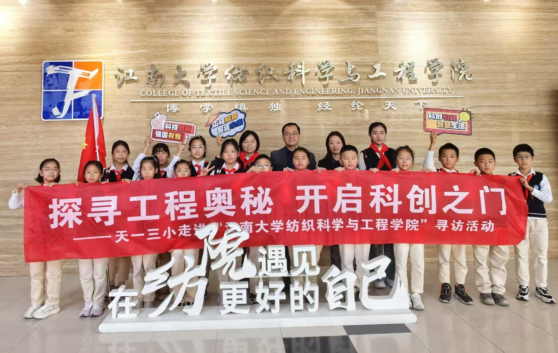 11月4日,无锡市天一第三实验小学尤立忠副校长一行来纺织科学与工程学院参观。纺织科学与工程学院党委副书记兼副院长杨莉勤、织光者协会指导老师伏曦参加交流活动。