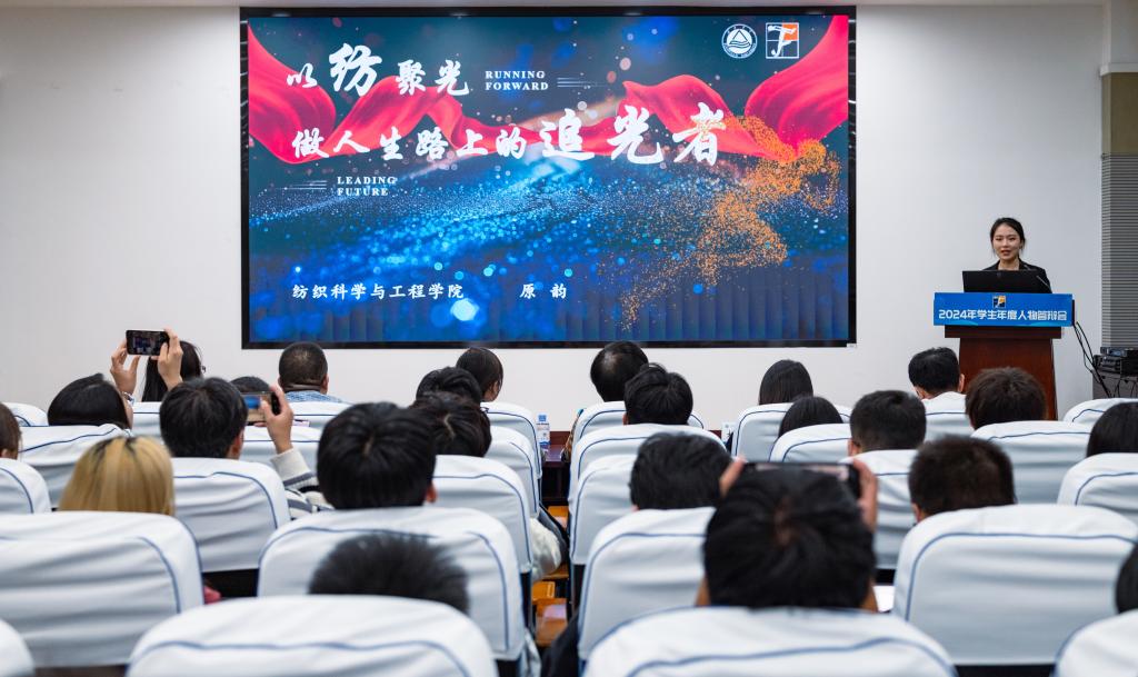 活动伊始,杨莉勤介绍了学生年度人物评选基本情况,祝愿答辩同学能展示出纺织青年拼搏进取、踔厉奋发的榜样风范和“奋楫笃行,履践致远”的精神风貌。她希望纺织学子以榜样为镜,不忘心中的志向与赤忱,以勤奋筑路,不畏险阻,用奋斗的脚步,书写青春答卷。
