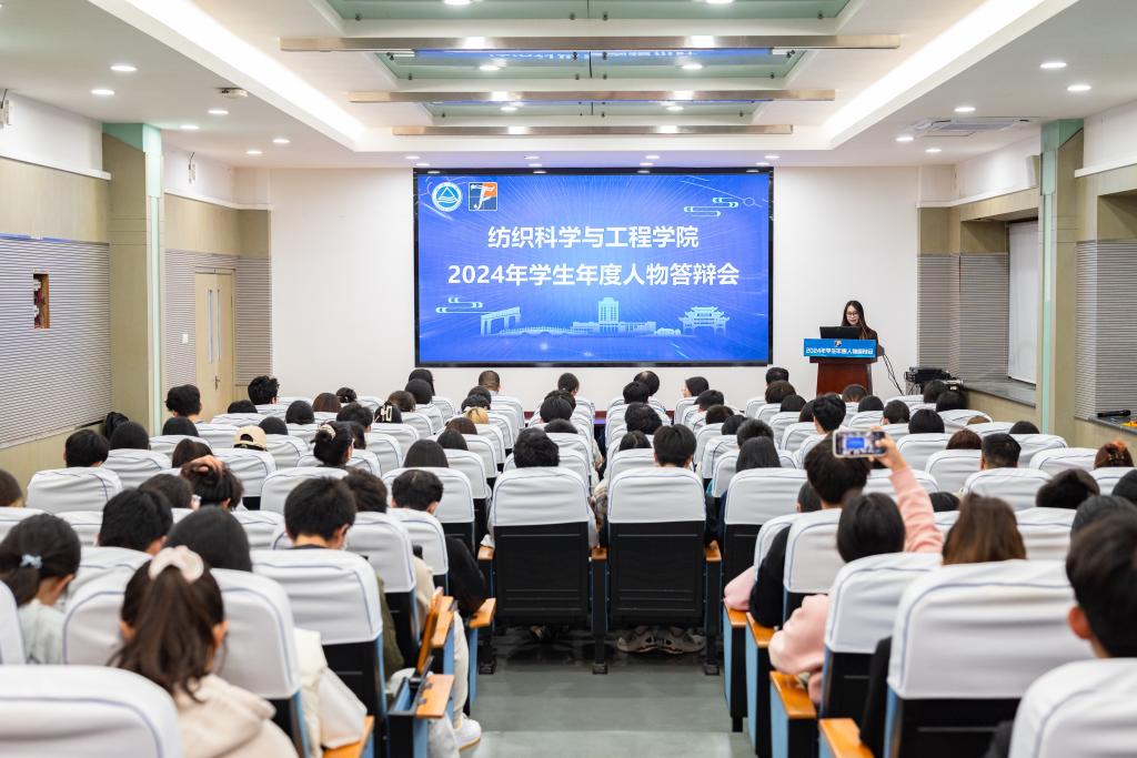为落实立德树人根本任务,展现新时代纺织学子的昂扬风貌,充分发挥优秀学生榜样的示范作用,11月13日,纺织科学与工程学院在A103报告厅举行2024年学生年度人物答辩会。纺织科学与工程学院党委书记张菁燕、江南大学团委副书记单云婷、学院党委副书记兼副院长杨莉勤、轻化系主任殷允杰,纺织2305班班主任吕鹏飞、纺织2404班班主任王清清出席活动并担任评委。来自各年级的46位大众评审、答辩选手亲友团和2024级学生班干部等近150名学生现场聆听了15位优秀学子的成长之旅,共同见证纺织学子的蓬勃风貌与榜样力量。