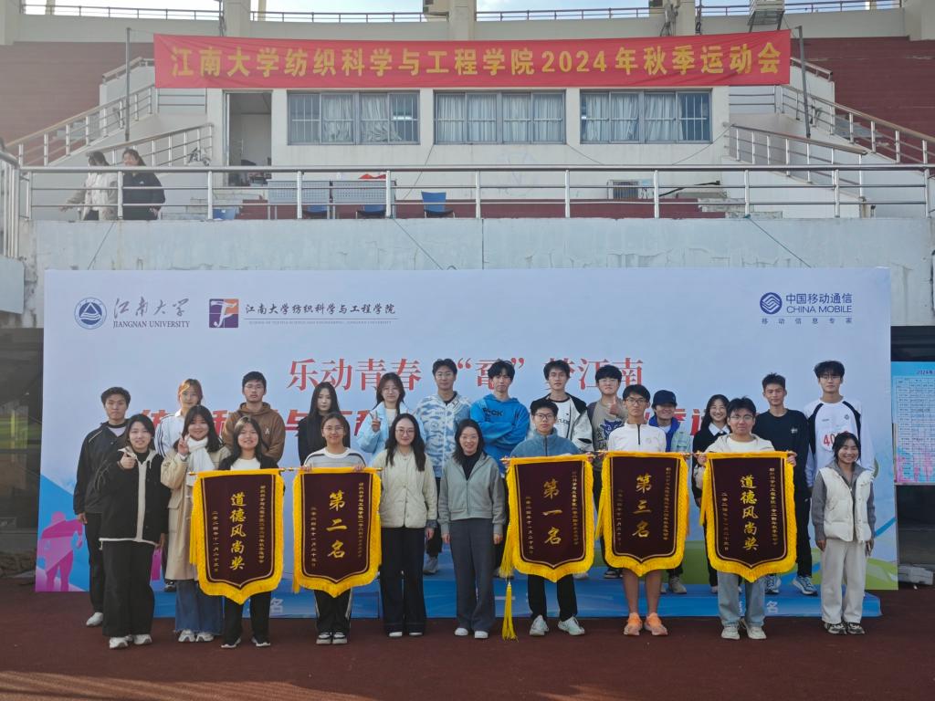 青春在赛道上飞扬,梦想在拼搏中绽放。经过一天的激烈角逐,运动会迎来了闭幕式暨颁奖环节。轻化2402班获得团体总分第一名,轻化2403班获得团体总分第二名,纺织2402班获得团体总分第三名,纺织(创新班)2401班和纺织2403班获得道德风尚奖。