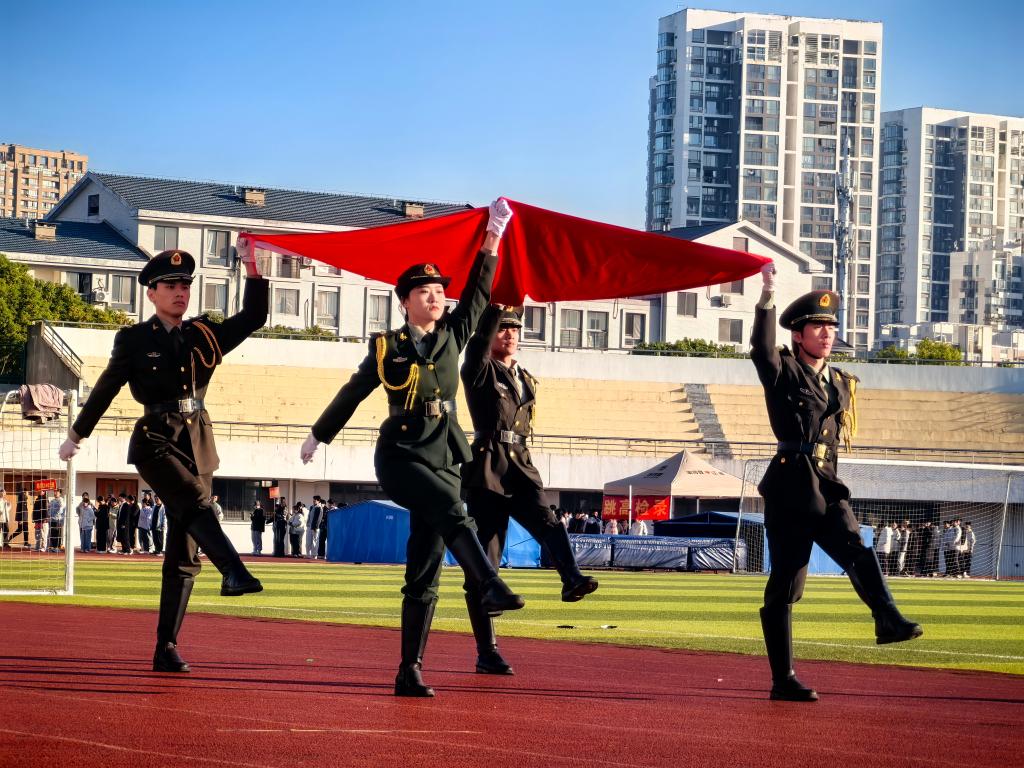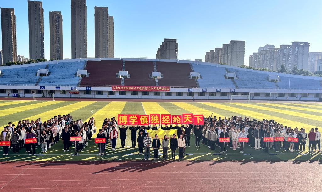 国旗方阵率先入场,他们步伐整齐,气势恢宏,手中的五星红旗在秋风中猎猎作响,彰显着对祖国的热爱与敬意。院旗方阵紧随其后,鲜艳的院旗在阳光下熠熠生辉,传递着纺织学科的独特魅力。紧接着,各班级方阵依次入场,他们身着各色服装,喊着响亮的口号,展示着各自的班级风采与团队精神。