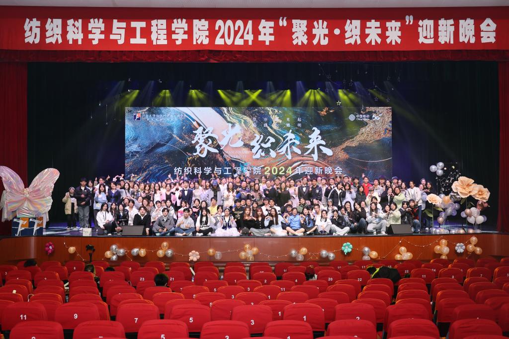 岁序唤光起,蹁跹织耀明。12月12日晚,纺织科学与工程学院 “聚光·织未来” 2024年迎新晚会在文浩馆举行。纺织科学与工程学院党委副书记、副院长杨莉勤,关工委常务副主任、特邀党建组织员谢翠林,学工办主任兼分团委书记任学敏出席晚会,新生班主任及辅导员代表、各兄弟学院师生代表及近千名学院学生共同观看晚会,共享视听盛宴。